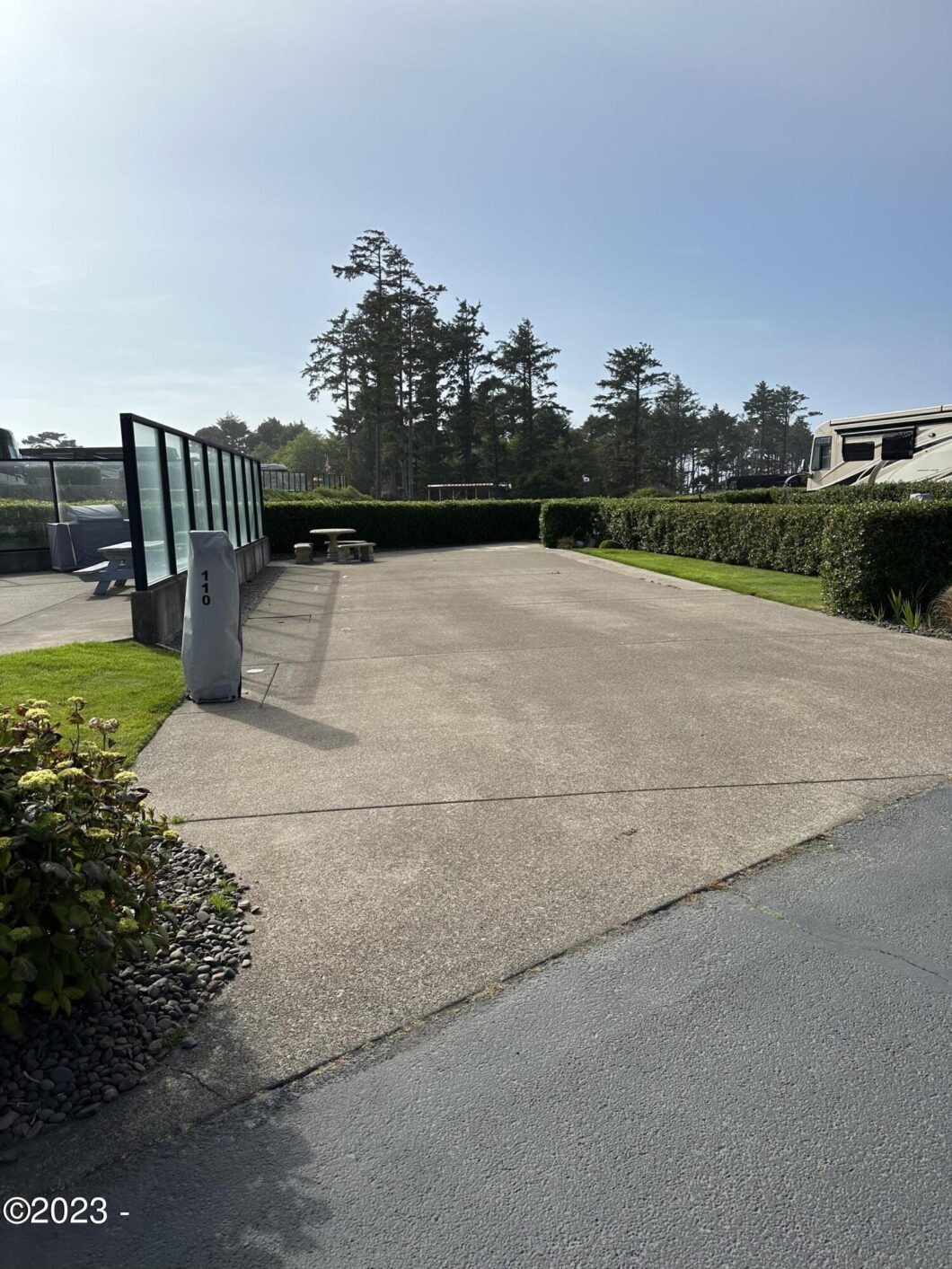 Beautiful pull in view lot, overlooking central park! Expanded Sitting area for outdoor entertainment, Private hedges, centrally located in the resort in between all amenities. Pacific Shores Motorcoach Resort is located on a bluff overlooking the ocean and has a lighthouse view. Nature walking trails through the wood and access to an uncrowded beach. A large clubhouse and owner’s only lounge, gym and kitchen. Indoor/outdoor pools and spas and hot sauna.