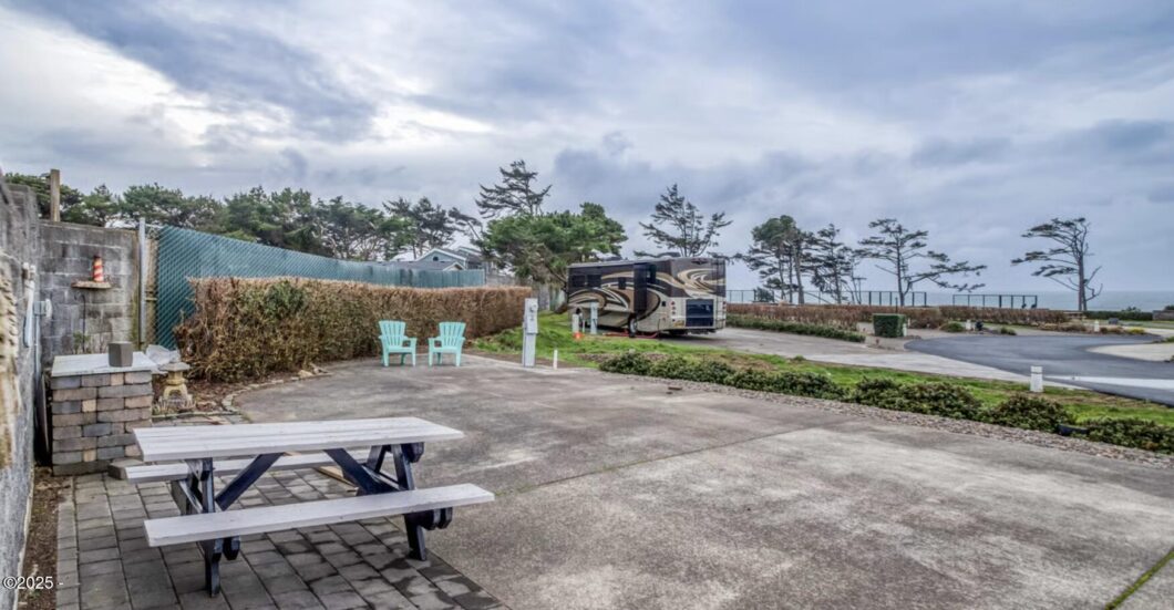 Back in lot with spacious, paved sitting area at the back and side, providing more outdoor living. Built in food preparing area. Mature, high hedges in the back offer significant privacy from neighbors. The lot is situated next to a space without another Motor-coach. Conveniently located near the resort’s amenities and the pathway to the ocean. Pacific Shores Motorcoach Resort is located on a bluff overlooking the Pacific Ocean and has a breath-taking lighthouse view. Nature walking trails through the woods and private access to our uncrowded beautifully photogenic beach. A large clubhouse and owner’s only lounge, gym and kitchen. Indoor and outdoor pools and spas along with our hot sauna steam room.