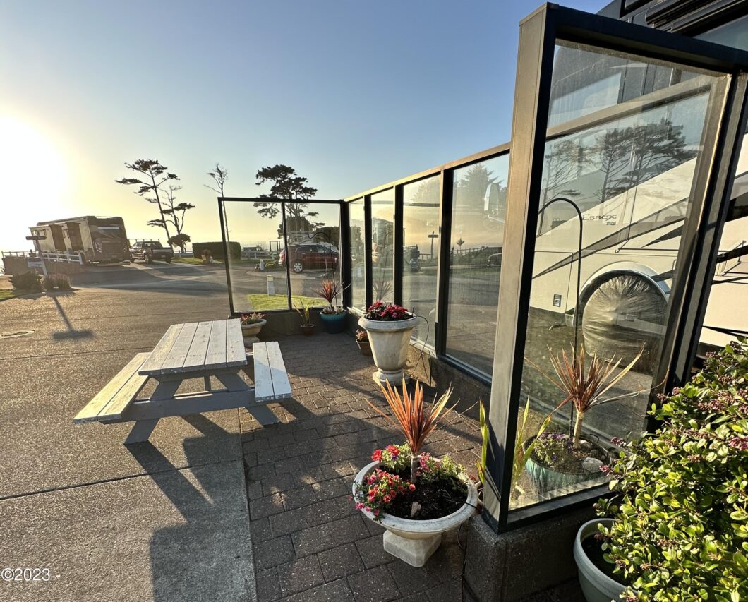 Beautiful back in lot near Clubhouse section. Fantastic Ocean View with windscreen for those breezy days and roomy paved sitting area for outdoor entertainment. Come and check this beauty out! Pacific Shores Motorcoach Resort is located on a bluff overlooking the ocean and has a lighthouse view. Nature walking trails through the wood and access to an uncrowded beach. A large clubhouse and owner’s only lounge, gym and kitchen. Indoor/outdoor pools and spas and hot sauna.