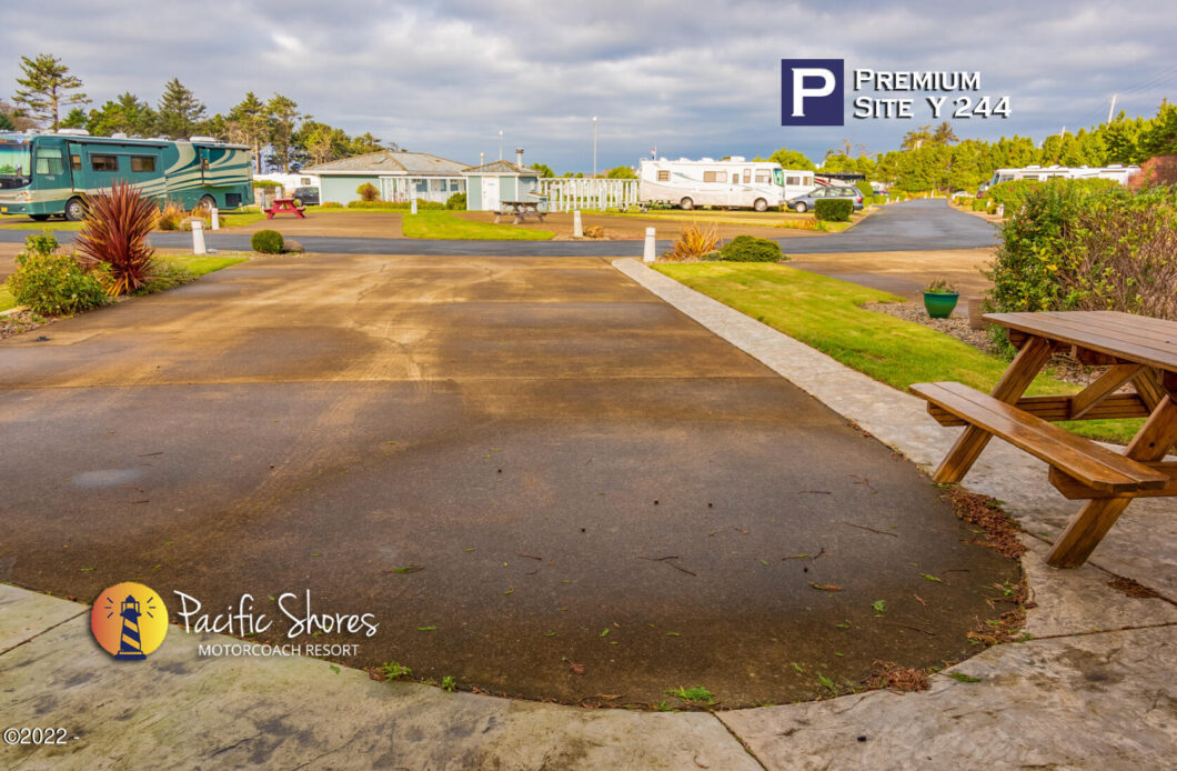 Quiet corner lot with expanded sitting area and flower-bed. When you park the coach and the pull car on the lot, you will have a complete privacy in the back for your outdoor gatherings. Gated Pacific Shores offers indoor/outdoor pools and spas, hot sauna. Owner’s only lounge with pool-table, poker table. Owner’s only gym and kitchen. Nature walking trails, pickle-ball/basketball court. Private access to the quiet beach!