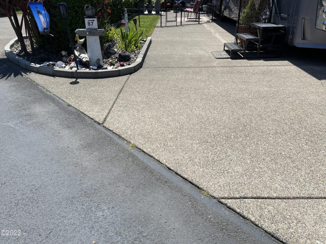 Lot 87 is located in North side of Pacific Shores. Back in lot with expanded sitting area for outdoor entertainment. Tall hedges for the privacy. Pacific Shores Motorcoach Resort is located on a bluff overlooking the ocean and has a lighthouse view. Nature walking trails through the wood and access to an uncrowded beach. A large clubhouse and owner’s only lounge, gym and kitchen. Indoor/outdoor pools and spas and hot sauna.