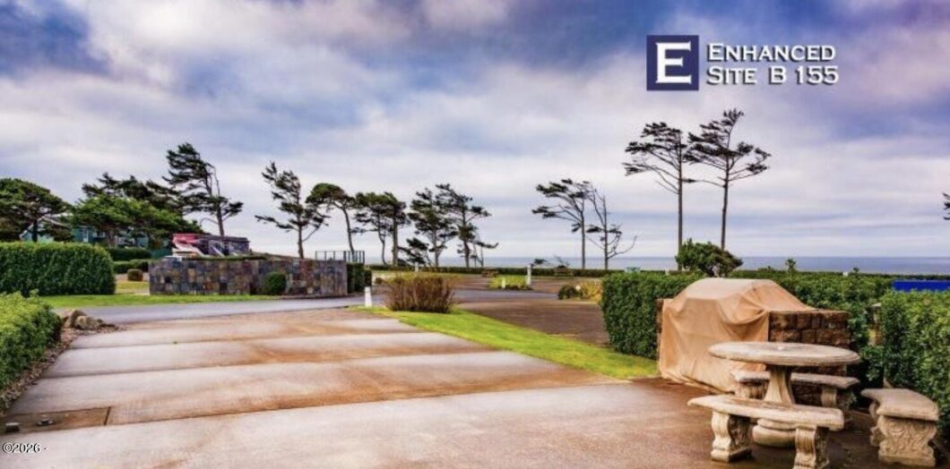 Beautiful back-in lot with an ocean view; built in BBQ stand; hedges all around the lot; very private in the back side of the lot. Pacific Shores Motorcoach Resort is located on a bluff overlooking the ocean and has a lighthouse view. Nature walking trails through the wood and access to an uncrowded beach. A large clubhouse and owner’s only lounge, gym and kitchen. Indoor/outdoor pools and spas and hot sauna.